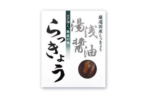 しょうゆ発祥の地、和歌山県の湯浅町産醤油で漬け込みました。日本古来の醤油と、らっきょうとの相性は抜群です。